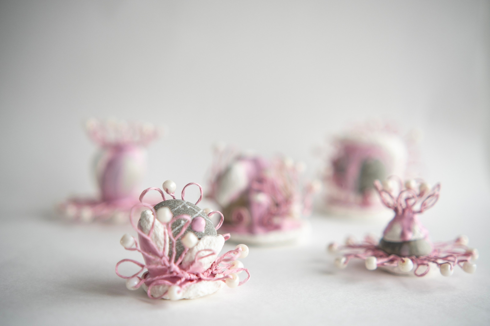 Инсталляция предполагает прямое взаимодействие. Среди ветвей спрятаны «таинки» — формы чувств, мраморные камни с бисерными элементами. Участник находит их, замедляясь, извлекает, согревает в ладонях и помещает в сердце дома. Этот медленный тактильный жест создаёт внутреннее смещение: отпускание напряжения и возвращение к ясности и тишине.
